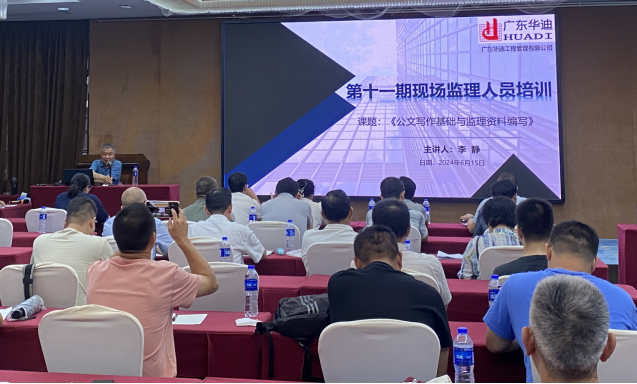 2024年6月15日,公司在凱旋龍酒店舉辦了2024年第三期現(xiàn)場監(jiān)理人員培訓(xùn)班,公司領(lǐng)導(dǎo)徐云云、岳迪、李靜、黃檳凡出席了本期培訓(xùn),公司直屬項(xiàng)目及韶關(guān)、東莞等分公司分共70余人參加了本期培訓(xùn)。